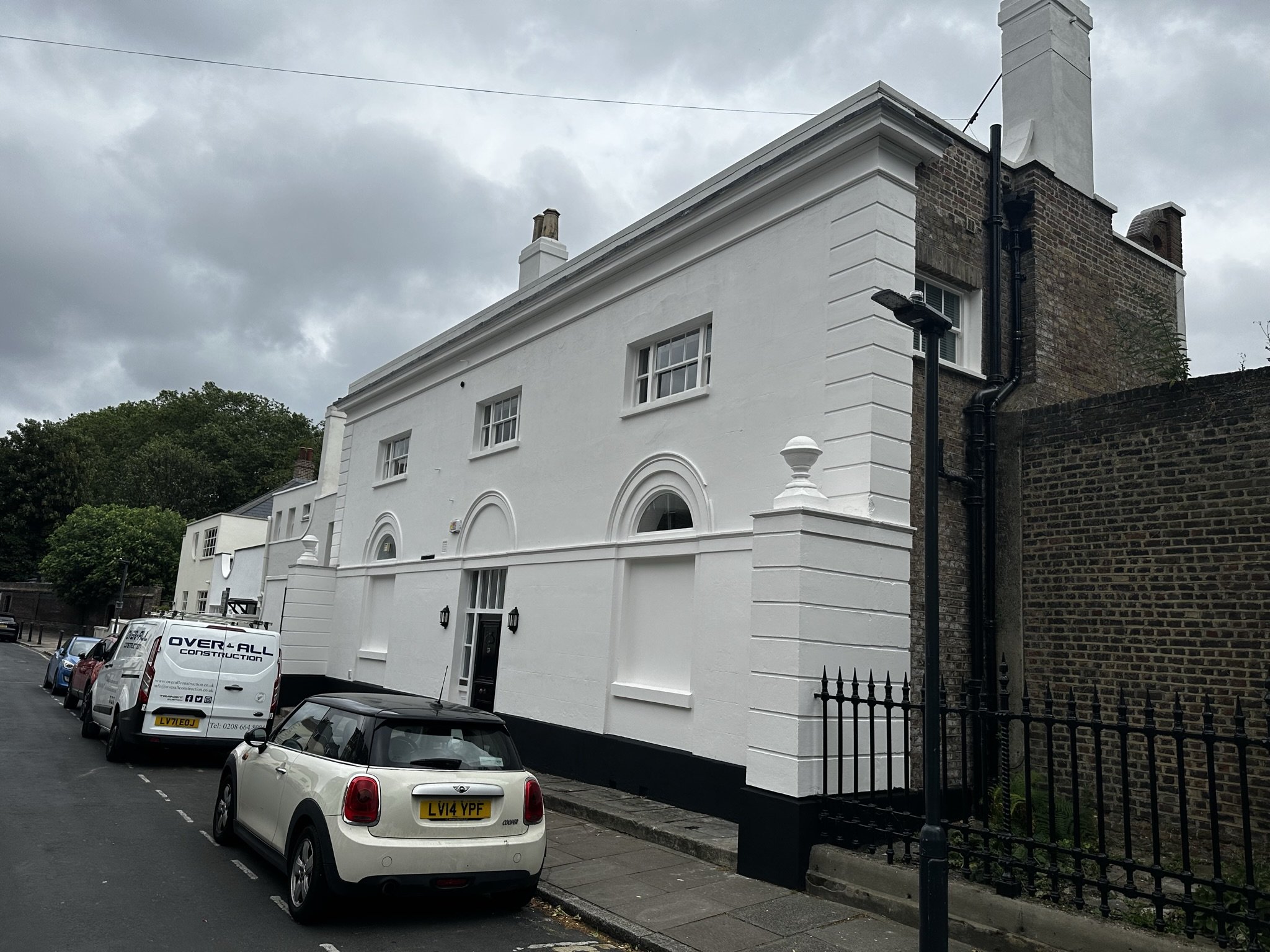 This house on the boundary of Greenwich park was suffering with water leaks and damp due to a variety of issues with the roof, windows and render. We started off by repairing the roof structure and installing a new slate roof. This was then followed up by repairing all render and windows and finished with a full external redecoration.